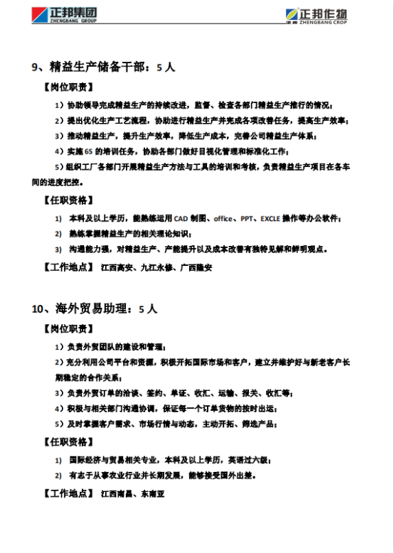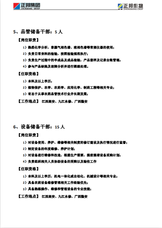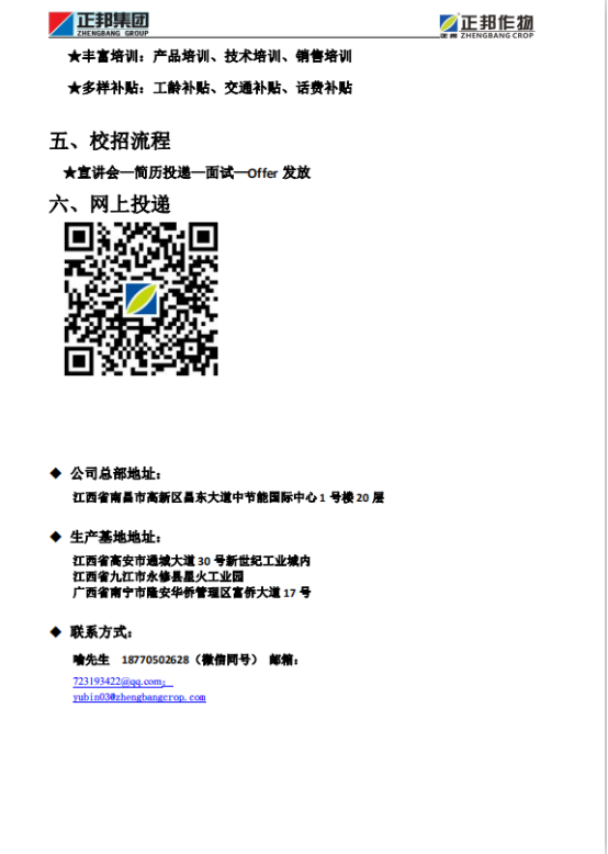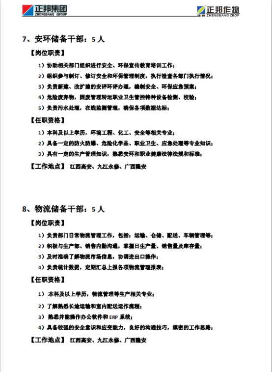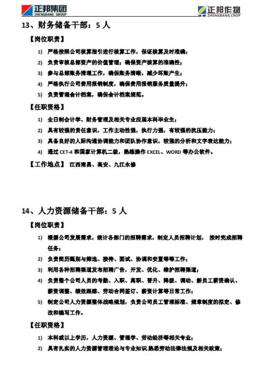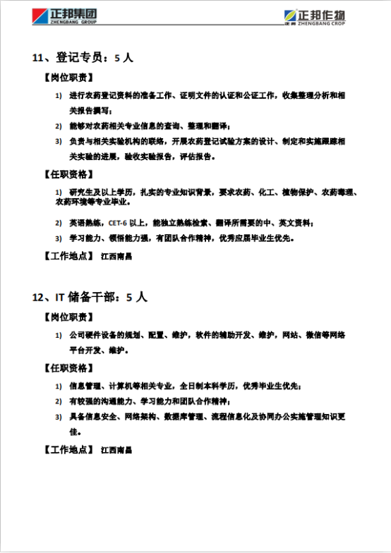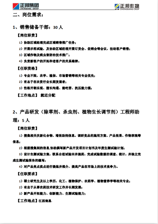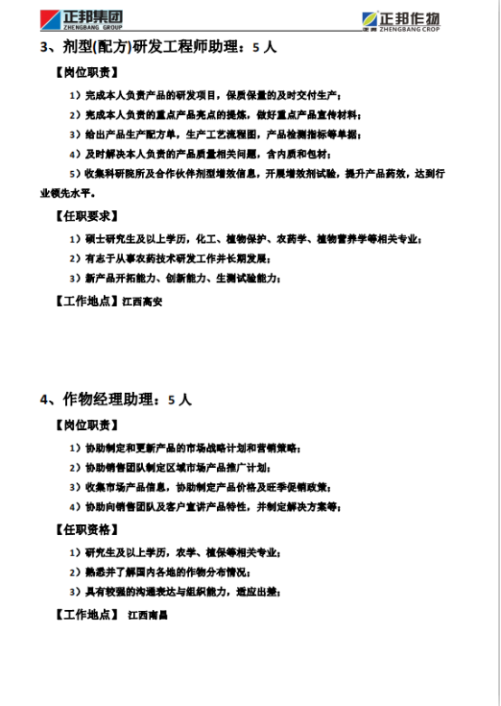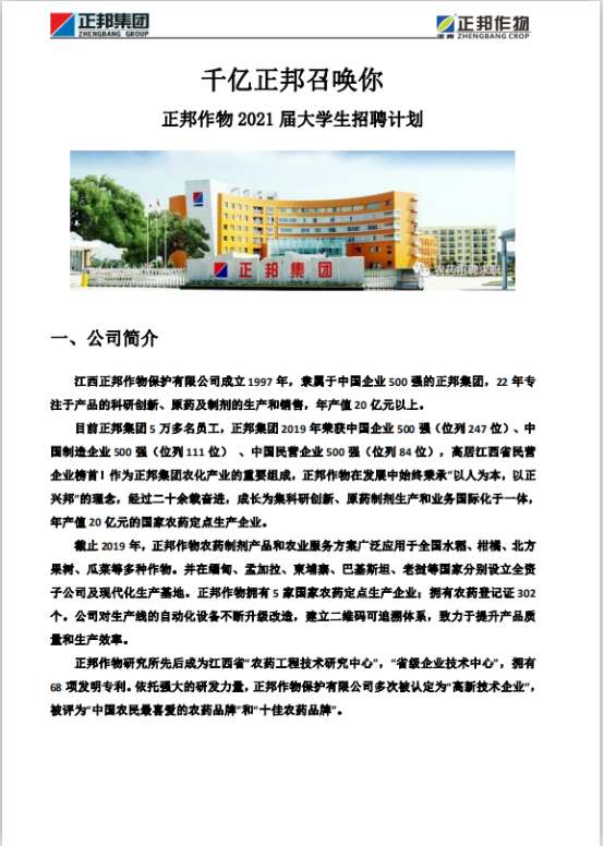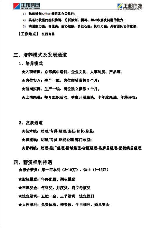 正邦作物21届招聘简章