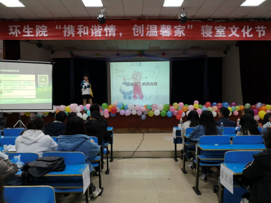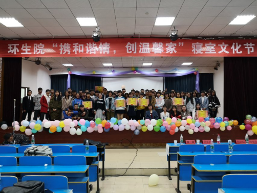 11月18日19:00,由环生院团学联主办的环生院第一届寝室文化节决赛在文科楼模拟法庭隆重举行。本次赛事的评审团由党委书记刘汉红、团委学生会副主席孙岳宏、团委副书记何佳佳、化药院权益保障部部长雷星,mk体育官网团委学生会各部门部长及18级各班班长、团支书组成。