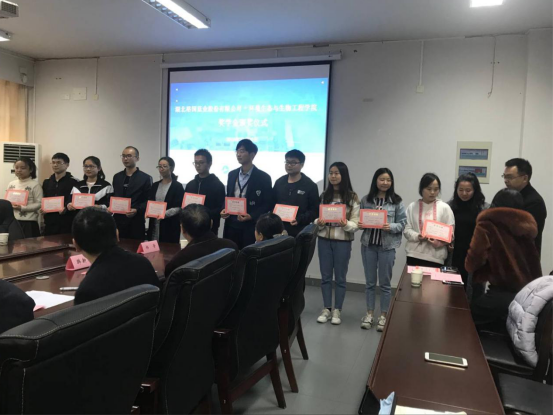 获奖学生代表2017生物工程专业孙岳宏同学分享了个人在学习中的点滴经历,感谢企业的资助,感恩学校为同学们创造了良好的环境和氛围,并且发出了要以实际行动回报企业、母校和社会的倡议。
