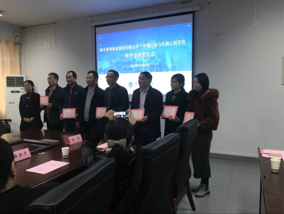 (通讯员 朱向莹)11月30日下午,2018年度湖北裕国菇业奖教金/奖助学金颁奖仪式在武汉工程大学流芳校区第四教学楼4306会议室举行。湖北裕国菇业有限公司常务副总经理于晓刚等一行三人,我校校党委常委、党委副书记郑丹凤,学生处、校友工作处相关负责人以及mk体育官网,mk体育官网主要负责人、获奖教师代表、全体获奖学生出席颁奖仪式,仪式由学生处处长王涛主持。
