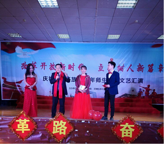 2018年12月13日14:00,为庆祝改革开放四十周年,让改革开放之风遍布校园,mk体育官网,mk体育官网和马克思主义学院第一次师生联谊文艺汇演在文科楼模拟法庭隆重举行。出席本次汇演的嘉宾有校党委书记程幼金,党委宣传部常务副部长任兵,学工部部长王涛,校团委书记李芳,马克思主义学院党委书记吴秋凤,马克思主义学院院长舒先林,马克思主义学院副院长杨克平,mk体育官网,mk体育官网党委书记刘汉红,mk体育官网,mk体育官网党委副书记陈朝娟,