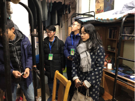 在朱向莹老师现场指导下,学生会副主席孙岳宏带领着学生自律委员会的干事们来到泰塑学生公寓进行期末寝室抽查,并且在检查过程中对各寝室进行宣传和介绍“寝室文明创建”相关内容,号召大家定期在寝室内进行大扫除,营造文明和谐的寝室氛围。
