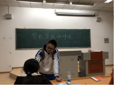 “学长,你现在在哪里上学啊?”“学长,你能给我讲讲大学里的故事么?”“学长,接下来我改怎么给自己制定计划?”“学长,你能告诉我你这几科是怎么学的吗?”“学长,你的专业是干什么的呀?”……回答着学弟学妹们的一个又一个问题,我突然觉得他们好像当年的自己,对大学充满着好奇。