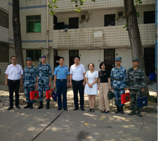 孔海霞代表学院对坚守岗位、奋斗在高温一线的带训教官表示感谢和慰问,了解了学生近期军训的基本情况,向教官们送上了慰问品。