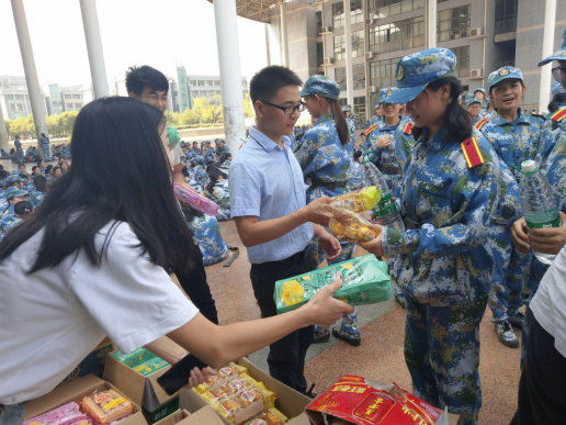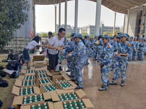 辅导员邓炜为参训的学生们发放了面包和矿泉水等慰问物资,带去了学院的关怀和鼓励。