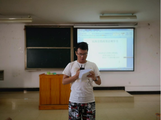 紧接着,由各个班级负责人分别带领大家学习每一小章。带领大家了解民族宗教政策法规的主要内容。