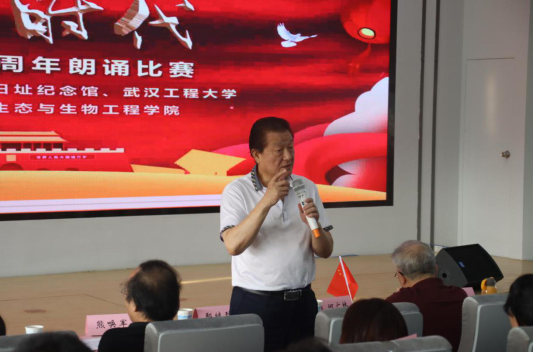 大赛尾声,鄢继烈做总结点评,他认为选手们的表现展现出了较高的艺术水平,对语言节奏拿捏准确,对情感把握恰到好处;作品内容传承红色基因,表达家国情怀让观众深受感触。他盛赞了学校对朗诵活动的精心组织和周密安排,很多细节都使他感受到了武汉工程大学深厚的文化底蕴和艺术素养。