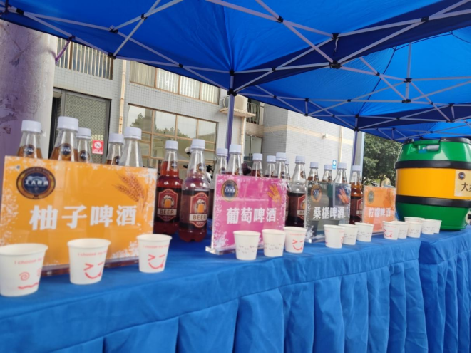 学院的展品区各类特色精酿啤酒琳琅满目。桑椹、柚子、柠檬、葡萄与大麦原浆的巧妙搭配,经微生物发酵的精心雕琢,幻化成风味各异的啤酒佳酿。从清新果味到浓郁麦香,每一款精酿啤酒都承载着研发团队对品质与口感的极致追求。微生物发酵功能谷物产品是科研团队深入研究微生物与谷物的相互作用机制,运用精准的发酵技术,使谷物中的营养成分得到有效优化,同时产生了多种具有保健功能的活性物质。板栗功能性产品是运用前沿的食品加工技术,通过一系列复杂而精细的加工工序,成功研制出益生元型青汁、栗酚饮、低GI栗蓉烘培馅料等一系列创新产品,提高了板栗咋在健康食品领域的应用。