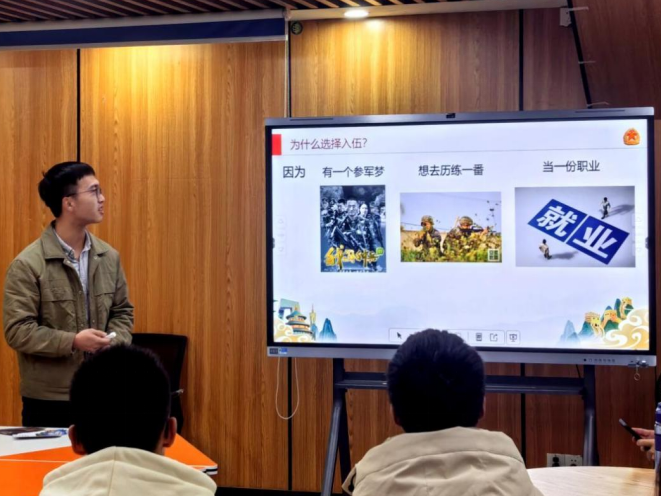 宣讲会上两位宣讲人通过深入浅出的讲解,为同学们全面解读了当前的招兵政策和参军入伍的各项要求。他们从支撑社会稳定讲到保障国家安全,让每一位同学都深刻认识到国防建设的重要性,鼓励同学们投身军队,锤炼自身的品格修为,为国家的安全和发展贡献青春力量。