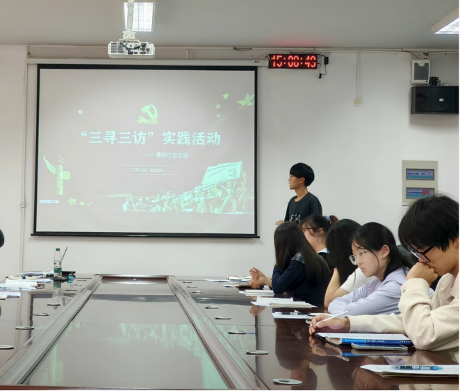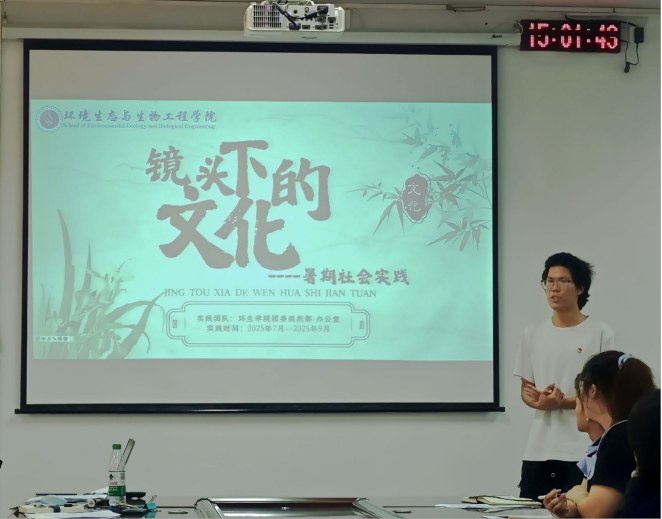 会上,学院团委指导老师肖志昕布置本学期及9月份重点工作。肖志昕首先肯定了上一阶段团学工作的成效,随后围绕思想建设、校园文化活动、志愿服务、组织建设等方面,明确了本学期的工作目标与任务,尤其对9月份的新生引导、学风建设活动等重点工作进行了细致安排,为接下来团学工作的有序开展提供了清晰指引。暑期社会实践6个团队分别通过PPT展示、视频播放等形式,分享了暑期在红色精神学习、民族文化传播、学堂知识宣讲等实践活动中的经历与成果。汇报内容丰富详实,既有实践过程中的困难与挑战,也有收获与感悟,充分展现了环生学子将专业知识与社会需求相结合的实践能力,也为其他学生骨干开展后续实践活动提供了宝贵经验。