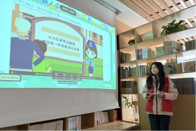 活动现场,志愿者借助生动有趣的PPT课件和通俗易懂的动画视频,以儿童视角解读了“宪法是什么”“宪法与我们的生活有什么关系”“学习宪法的意义”等核心问题。宣讲过程中,志愿者通过趣味提问、实时互动等形式调动小朋友的参与积极性,将抽象的法律知识转化为具象的生活场景,引导小朋友发自内心地了解宪法、认可宪法,为他们筑牢法治认知的基础。