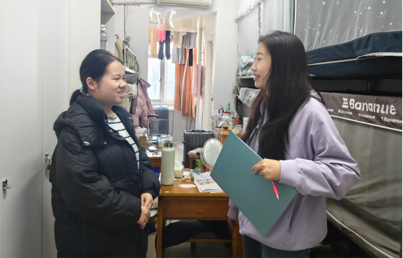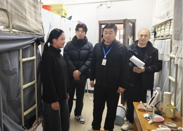 1月15日,学院联合校团委、保卫处开展宿舍走访,各年级辅导员与班主任参与。走访中,老师们细致查看宿舍卫生环境与安全状况,重点排查违规电器、私拉乱接电线等安全隐患,同时了解大家假期计划与返乡安排,叮嘱即将离校同学务必妥善保管个人物品,关闭电源、锁好门窗;留校同学严格遵守宿舍管理规定,注意用电、防火及财物安全,保持信息畅通,遇到困难及时向学院反映。这传递了学院对学生的深切关怀,将安全教育落实到学生生活的每一个角落。