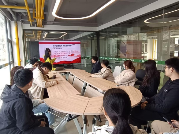 3月23日,在教辅七“一站式”学生社区7-1活动室,2025级生物技术与工程专业研究生党员谢佳佳以“科研报国,服务社会”为题,结合自身专业学习和科研实践,阐述了新时代研究生如何将雷锋精神与科研报国志向相结合。她分享了课题组深入生态保护一线开展调研、攻克环境治理难题的经历,讲述了科研工作者以扎实的专业知识和严谨的治学态度服务国家生态文明建设的责任担当。她认为,科研报国不仅是一种志向,更是一种行动,要像雷锋那样“干一行爱一行、钻一行精一行”,把论文写在祖国大地上,用科技创新守护绿水青山。