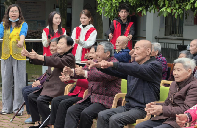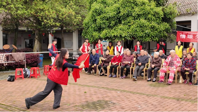 文艺表演在温馨的氛围中正式拉开帷幕,同学们精心筹备的各类节目轮番上演,为老人们呈现了一场精彩纷呈、暖意十足的视听盛宴。贴合老人身心特点的中老年健身操率先登场,舒缓的节奏、轻柔的动作,引得老人们纷纷颔首附和;舞蹈《九儿》意境悠远,同学们以优美的舞姿、真挚的情感,将作品中的深情演绎得淋漓尽致,每一个转身、每一个抬手都饱含温度,赢得现场老人们阵阵热烈的掌声;活动尾声,《我爱你中国》的嘹亮歌声响彻全场,同学们饱含深情的演唱,勾起了老人们的时代记忆,歌声里满是家国情怀与岁月温情,现场暖意融融、氛围浓厚。