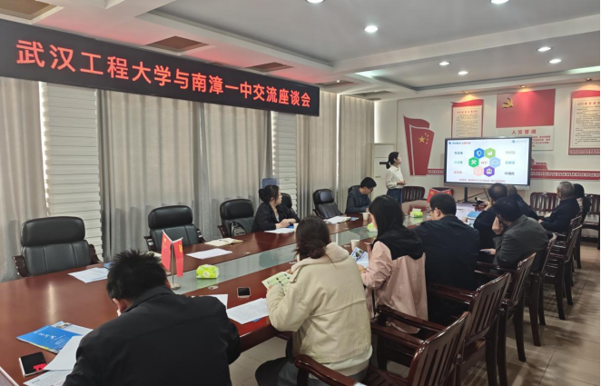 座谈中,郑冬洁首先感谢高中的周密安排和热情接待,通过PPT从专业强、考研强、就业强、发展强、区位优和环境优等六个方面概括了学校办学特色、优势专业前景、学生全面发展等情况,就高考填报志愿相关政策和填报技巧进行了交流。同时,她提出三点希望:一是加强两校沟通对接,精准传递招生信息;二是希望高中多推介学校及专业,引导学子科学规划升学;三是深化协同育人机制,实现双方互利共赢。陈功介绍了学院发展历程、师资力量、科研成果和人才培养等核心优势,为在场班主任指导学生报考提供了清晰指引和有力参考。现场播放了武汉工程大学宣传片,以生动的影像多角度、立体化地呈现了我校的发展成就与校园文化,有效增进了参会人员对学校的全方位了解。