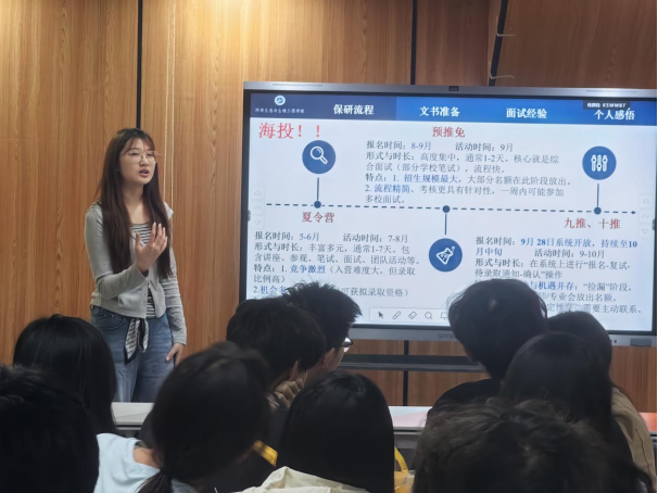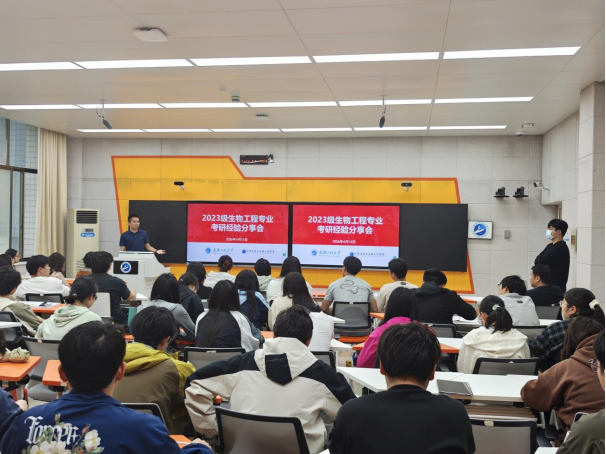 4月13日下午,生物工程专业交流会在3206智慧教室举行。学院本硕博一体化培养的优秀博士生徐晟文分享了他在高水平科研道路上的探索历程,并结合发表多篇顶级期刊论文的经验,鼓励学弟学妹们尽早树立科研志向,夯实专业基础。推免成功的卢思羽同学讲述了保研过程中的材料准备、面试技巧与心态调整。针对同学们关注的不同目标院校,曾瑞琦、雷银培、谢婉怡、肖冰盈和魏紫悦等同学分别从院校选择、专业课复习、公共课备考及复试策略等方面进行了细致讲解。