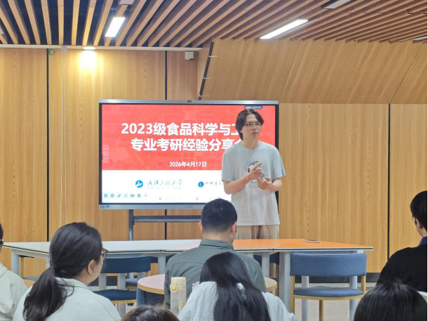 4月17日下午,食品科学与工程专业考研动员会在创新创业中心“一站式”社区A3活动室举行。保研至江南大学的龙彩云同学详细梳理了夏令营申请、推免资格获取及导师沟通的全流程;一志愿报考中国海洋大学的张恒沧同学分享了“双一流”高校食品专业的备考重点与真题使用经验;调剂至南昌大学的张浩然同学以自身经历为例,剖析了调剂阶段的院校筛选与心理调适;刘彤同学则从报考本校的优势出发,鼓励大家合理评估自身实力,稳妥选择目标。分享内容紧贴食品专业就业与科研热点,现场互动热烈。